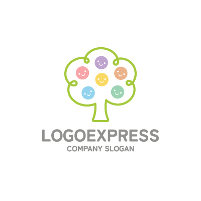 笑顔の木とカラフルな実が彩る成長ロゴ [10001]