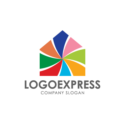 赤、オレンジ、黄、緑、水色、青、ピンクといった多様な色は、個性、創造性、活気、そして無限の可能性を象徴し、企業が提供するサービスや製品の魅力と柔軟性を表現します。家(ホーム)の形状は、安心、安全、居場所、コミュニティ、そして堅実な基盤を意味し、顧客に信頼と心地よさを提供する企業の姿勢を伝えます。内部の扇状の模様は、風車や光が広がる様子を連想させ、動き、ダイナミズム、エネルギー、そして喜びの拡散を示唆しており、多様な人々が協力し合って一つの大きな価値を創造する共創と発展の精神を表現します。幼稚園・保育園・託児所、子供向け商品、教育機関、不動産、建設、IT・デザイン、コミュニティサービス、地域開発など、多様性、創造性、安心感、そして明るい未来をアピールしたい業界に最適です。