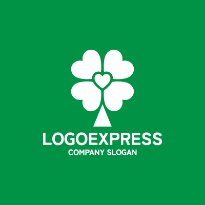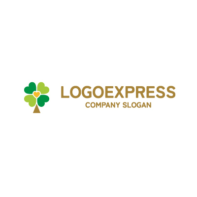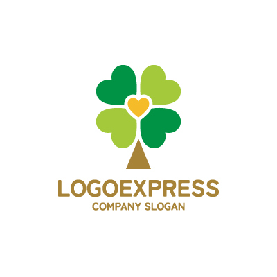 ハートと四つ葉のクローバーの木のロゴ [10013]