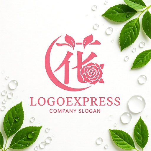 淡いピンク色は、愛情、優しさ、幸福、そして繊細な美しさを象徴し、ブランドの温かくフェミニンなイメージを表現します。漢字の「花」は、日本の伝統と文化への敬意を表し、バラのモチーフは、普遍的な「愛」「美」「優雅さ」「情熱」を意味し、高品質なサービスや製品、そして顧客に感動を与えるブランドの姿勢を伝えます。周囲の流れるような曲線と葉は、自然、成長、生命力、そして調和を示唆しており、見る人に心和む、ポジティブな印象を与えます。美容サロン、エステ、アパレル、ジュエリー、ウェディング、フラワーショップ、和風ブランド、ウェルネス関連企業など、美しさ、優雅さ、そして日本らしさをアピールしたい業界にマッチします。