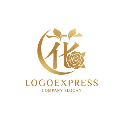 漢字「花」とバラのエレガントロゴ [10039]