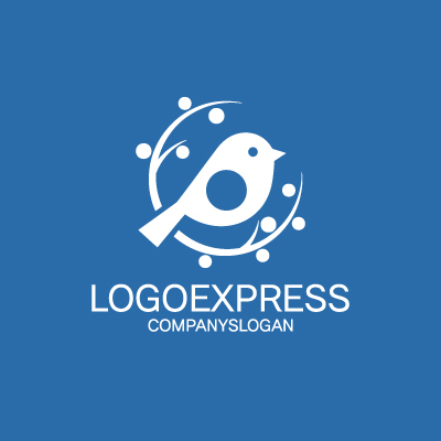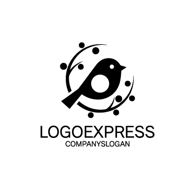 鳥、枝、色とりどりのベリーのロゴ [10951]