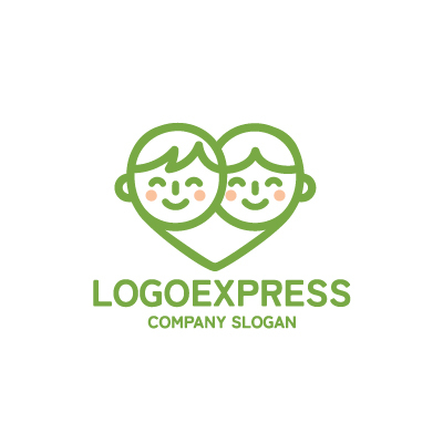 鮮やかな緑色のラインは、自然、成長、生命力、健康、そして持続可能性を象徴し、企業が持つ健全な発展と環境への配慮を表現します。二つの笑顔の顔は、幸福、喜び、友情、パートナーシップ、そして子供たちの温かい繋がりを意味し、顧客やコミュニティとの誠実な関係性を強調します。全体で形成されるハートの形は、愛情、優しさ、思いやり、そしてケアを象徴しており、人間中心の価値観と献身的なサービス提供の姿勢を伝えます。幼稚園・保育園・託児所、子供向け商品、教育機関、NPO、福祉団体、医療・介護、ウェルネス、地域コミュニティ、家族向けサービスなど、幸福、繋がり、成長、そして人間中心の価値をアピールしたいあらゆる業界に最適です。