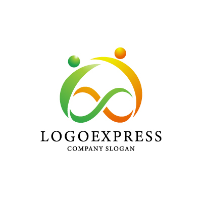 鮮やかな緑色のグラデーションは、自然、成長、生命力、健康、そして持続可能な未来を象徴し、企業のエコロジーな姿勢と健全な発展を表現します。暖かなオレンジから黄色へのグラデーションは、活力、希望、ポジティブなエネルギー、そして未来への前向きな推進力を意味し、見る人に明るく活気ある印象を与えます。二つの人型が向かい合う(または抱き合う)形は、繋がり、協力、コミュニティ、相互支援、そして人間中心の価値観を示唆し、無限のシンボルは、継続的な成長、途切れない関係性、そして無限の可能性を表現します。全体の円形を思わせるデザインは、一体感、包括性、グローバルな視野を伝えます。NPO、教育機関、ウェルネス、環境関連企業、人材サービス、地域コミュニティ、家族向けサービスなど、繋がり、成長、希望、そして人間中心の価値をアピールしたいあらゆる業界に最適です。
