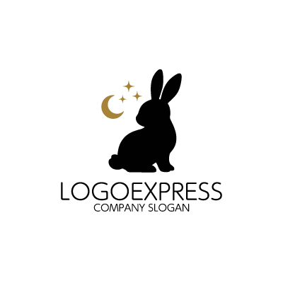 可愛らしいウサギと星月夜の夢ロゴ [10960]