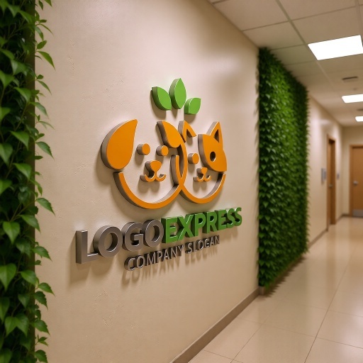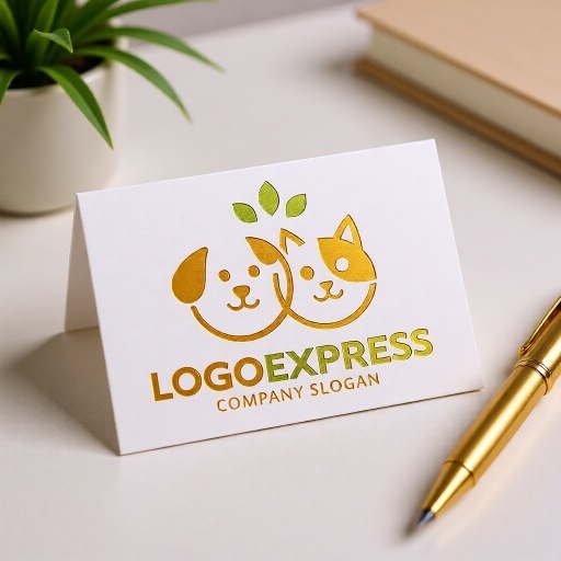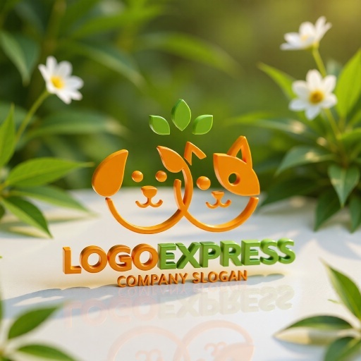 愛らしい犬と猫の表情は、忠誠心、友情、喜び、そして家族の一員としての幸福感を象徴し、ペットへの愛情と幸福感を表現します。二匹の顔が繋がるデザインは、ペットと飼い主の強い絆、または異なるペット間の調和を意味し、ペットの多様なニーズに応える企業の姿勢を伝えます。上部の緑色の葉は、自然、健康、オーガニック、環境への配慮、そして成長を示唆しており、安心で安全な製品やサービスを提供します。暖かなオレンジ色とフレッシュな緑色は、活気、親しみやすさ、そしてポジティブな印象を与えます。ペットショップ、動物病院、ペットサロン、ペットホテル、ペットフードブランド、動物保護団体、子供向け商品など、ペットとその家族に寄り添う温かいサービスや、自然派の高品質な商品を提供したい業界に最適です。