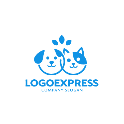 犬猫の繋がりと植物のロゴ [10994]