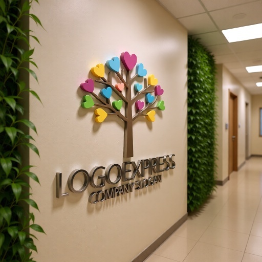 茶色の幹は、安定性、信頼性、堅実な基盤、そして大地に根ざした成長を象徴し、事業の揺るぎない土台と継続性を伝えます。ピンク、水色、黄、緑など、多様な色で描かれたハートの葉は、愛情、優しさ、幸福、希望、そして個々の成長を意味し、子供たちの無限の可能性や、人々が集い共に育む温かいコミュニティを表現します。全体のデザインは、生命の樹のように繁栄し、安らぎと喜びを提供する企業の理念を力強く表現しており、見る人に温かくポジティブな印象を与えます。幼稚園・保育園・託児所、子供向け商品、教育機関、NPO、福祉団体、ウェルネス、地域コミュニティ、家族向けサービスなど、愛情、成長、幸福、そして温かいつながりをアピールしたいあらゆる業界に最適です。