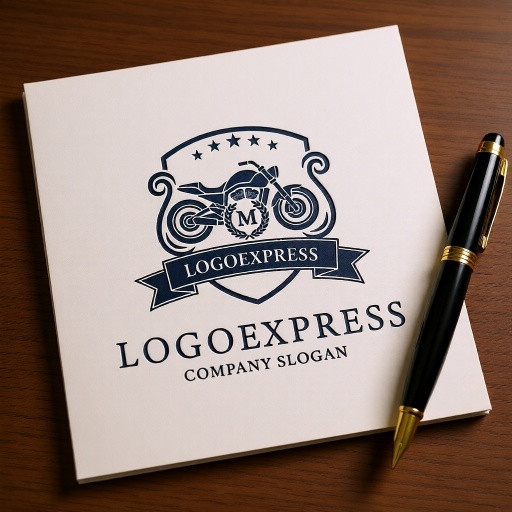 深い青色は信頼性、プロフェッショナリズム、安定性、そして権威を象徴し、企業が提供するサービスの堅実さと確かな指導力を強調します。オートバイは、自由、冒険、スピード、情熱、そして独立を意味し、顧客に特別な体験と興奮を提供することを伝えます。盾のモチーフは、保護、セキュリティ、堅牢さ、そしてブランドの揺るぎない信頼性と誠実さを象徴しています。月桂樹のリースと「M」は企業の中核となる価値観を示唆し、最高の達成と品質を追求する姿勢を表します。上部の星は品質と卓越性を意味します。オートバイ販売・修理、バイク用品、ツーリングクラブ、自動車関連、セキュリティ、高級ブランド、ライフスタイルブランドなど、自由、信頼性、情熱、そして卓越した品質をアピールしたい業界に最適です。