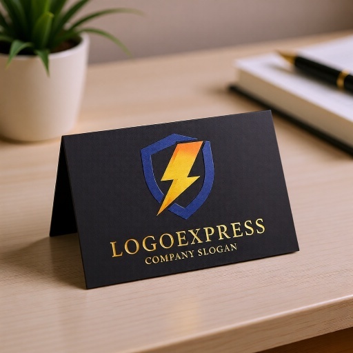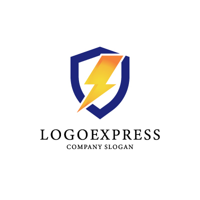 シールドは、安全、保護、信頼性、そして安定を象徴し、企業が顧客に提供する堅牢なサービスや確かな保証を表現します。中央を貫く稲妻は、スピード、エネルギー、革新、そして問題解決への迅速な対応力を意味し、ダイナミックで活発な企業イメージを伝えます。ネイビーブルーのシールドと、イエローからオレンジへのグラデーションの稲妻の組み合わせは、信頼感と情熱、そして最先端の技術力を同時にアピールします。ITセキュリティ、データ保護、電力関連企業、運送・物流サービス、法律事務所、金融機関、テクノロジー企業など、安全性、スピード、信頼性、そして革新性をアピールしたい業界に最適です。