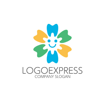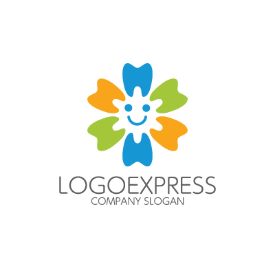 中央の笑顔は、幸福、喜び、安心感、そしてポジティブな体験を象徴し、見る人に心地よい印象を与えます。青、オレンジ、緑といったカラフルな歯のモチーフは、多様なサービス、健康的な口元、清潔感、そして楽しさを意味し、子供から大人まで幅広い年齢層に安心して利用してもらえる企業姿勢を表現します。歯が花のように並ぶデザインは、開花、成長、そして美しさを連想させ、健康的な口元がもたらす自信と輝きを伝えます。歯科医院、小児歯科、矯正歯科、ホワイトニング、口腔ケア製品、子供向け医療サービスなど、清潔感、信頼、楽しさ、そして健康をアピールしたいあらゆる業界に最適です。