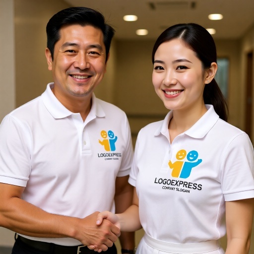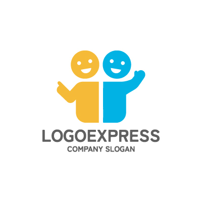 異なる色(黄色と水色)で表現された二つの人型は、多様性の中での協調、パートナーシップ、または異なるサービスや部門が協力して一つの目標に向かう姿勢を象徴しています。片方が指を差し、もう片方が手を振っているジェスチャーは、案内、歓迎、サポート、そして顧客との積極的なコミュニケーションを表しています。全体的に明るく、温かい印象を与え、信頼性と親しみやすさをアピールします。教育、保育、福祉、人材サービス、コンサルティング、コミュニティ運営、共同事業など、人との繋がりや協力を重視するあらゆる業界に最適です。