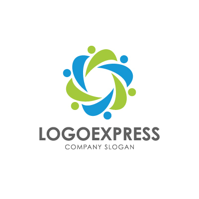 手を取り合うような人々のシルエットは、多様な人々が一体となって協力し、共に成長していく姿を表現しています。中心から外側へ広がるようなデザインは、活発な交流とエネルギーの循環を示唆し、周囲に配置された小さなドットは、個々のメンバーやアイデア、そしてそれらが集まって生まれる無限の可能性を象徴しています。青色は信頼、安定、プロフェッショナリズムを、緑色は成長、自然、新鮮さを伝え、企業が持つ健全で持続可能なコミュニティ形成への貢献を表します。教育、保育、福祉、NPO団体、地域活性化、人材育成、国際交流など、人との繋がり、多様性、そして協力を重視するあらゆる企業や団体に最適です。