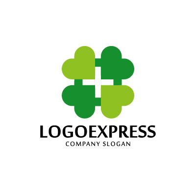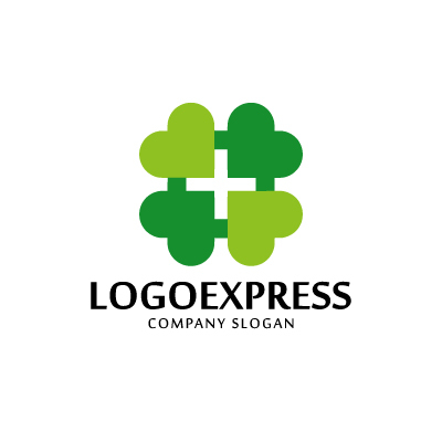 四つの葉は、幸福、幸運、自然、そしてコミュニティの繋がりを象徴し、中央のプラス記号は、医療、健康、ポジティブな成長、付加価値、そして問題解決への貢献を意味します。濃淡二色の緑色は、自然、健康、生命力、安心感、そして環境への配慮を強調し、穏やかで信頼できるブランドイメージを構築します。医療機関、薬局、ヘルスケア、ウェルネス、オーガニック製品、環境関連企業、福祉サービスなど、人々の健康と幸福、そして地球環境への貢献をアピールしたいあらゆる業界に最適です。