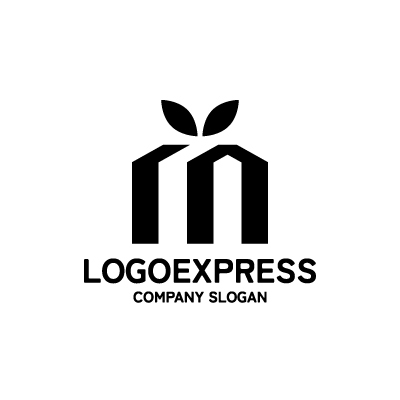 M字と葉っぱの自然派ハウスロゴ [10195]