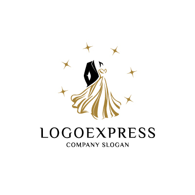 ウェディングドレスとタキシードの輝きロゴ [10216]