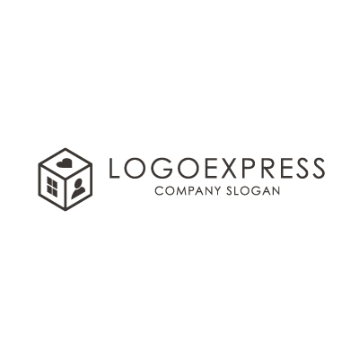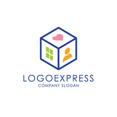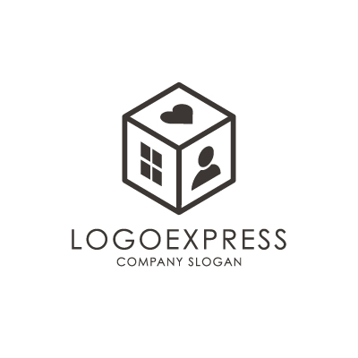 キューブ型の「家・人・心」ロゴ [10217]