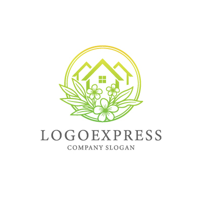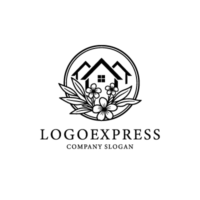 花と葉が彩る円形ハウスロゴ [10265]