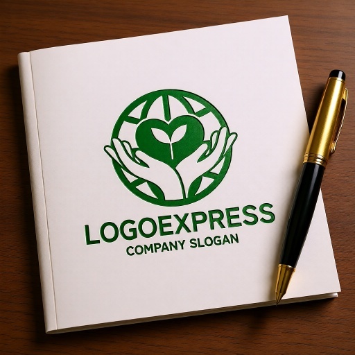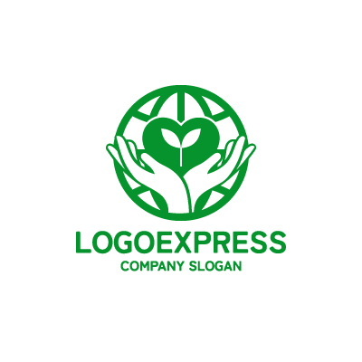 地球儀は、グローバルな視野、世界規模での活動、そして地球環境全体への責任を象徴します。手のひらは、ケア、保護、サポート、そして人間らしい温かい関わりを表現し、中央のハート型の新芽は、新しい生命の誕生、成長、自然への愛情、そして持続可能な発展を意味します。深いグリーンは、自然、健康、生命力、安心感、そして環境保護への強いコミットメントを強調し、見る人に信頼感と穏やかな印象を与えます。環境関連企業、NPO団体、オーガニック製品、ヘルスケア、教育機関、国際協力、福祉サービスなど、地球環境、人々の健康、そして持続可能な成長を重視するあらゆる業界に最適です。