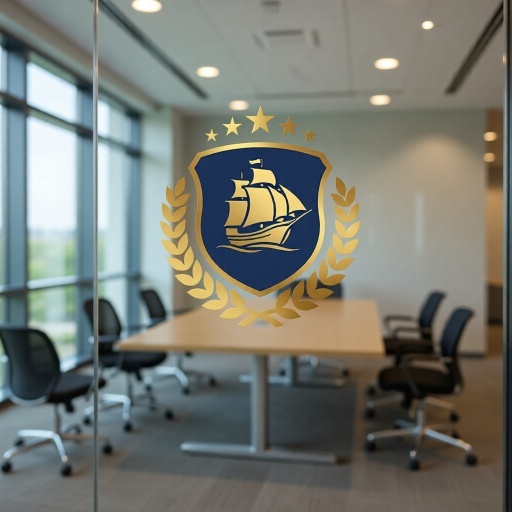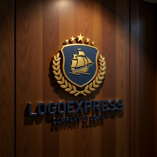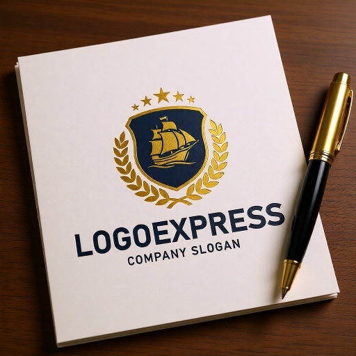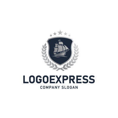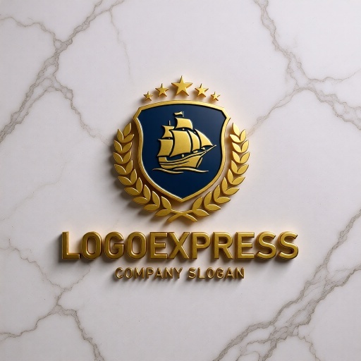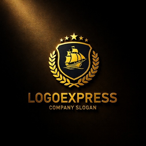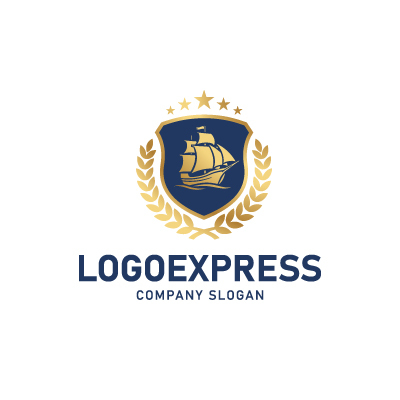 帆船は、航海、探求、冒険、貿易、そして歴史と伝統を象徴し、企業が持つ豊かな経験と未来への開拓精神を表現します。盾は、安全、保護、信頼性、そして堅実な基盤を意味し、顧客に提供する確かなサービスや保証を伝えます。周囲を囲む月桂樹の葉は勝利、栄光、卓越性を、上部の星は品質、目標、そして輝かしい成功を象徴しています。深いネイビーブルーは、信頼感、プロフェッショナリズム、安定性を、輝くゴールドは、高級感、品質の高さ、そして繁栄を強調し、見る人に強いインパクトと品格を与えます。海運業、物流・運送、旅行代理店、金融、教育機関、高級ブランド、歴史関連団体など、信頼性、伝統、グローバルな視野、そして卓越した品質をアピールしたいあらゆる業界に最適です。