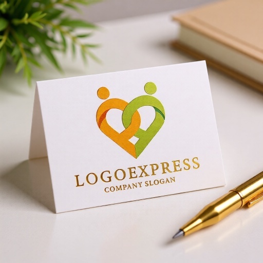 このデザインは、愛情、思いやり、パートナーシップ、そしてコミュニティの繋がりを象徴し、企業が人々を中心に据え、支え合う温かいサービスを提供することを表現します。オレンジ色の人型は、活力、幸福、創造性、そしてポジティブなエネルギーを、緑色の人型は、成長、自然、健康、そして安心感を伝え、バランスの取れた心豊かな印象を与えます。医療・福祉、介護、保育、教育、NPO団体、コンサルティング、人材サービス、ウェルネス、または家族向け商品など、人々の心と体の健康、繋がり、そして支え合いを重視するあらゆる業界に最適です。