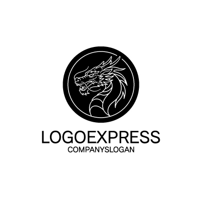 力強く咆哮する龍の円形ロゴ [10284]