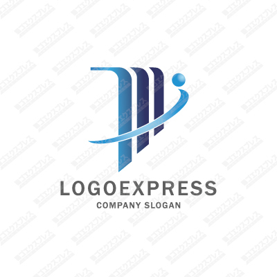 tと人をモチーフにした青いグラデーションロゴ [1171]
