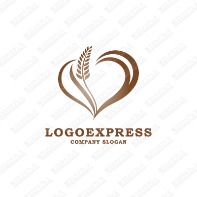 麦とハートをモチーフにしたおしゃれなロゴ [1203]