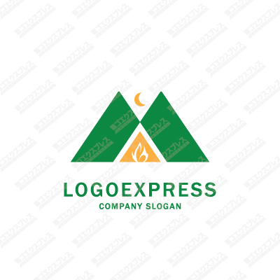キャンプファイアーと山の自然を感じさせるロゴ [1213]