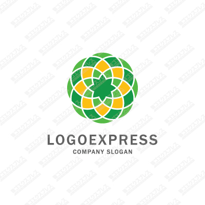 黄色と緑をタイル状に円の中に配置したロゴ [1263]