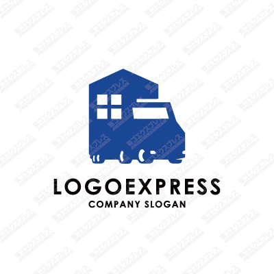 トレーラーハウスをモチーフにした青いロゴ [1275]