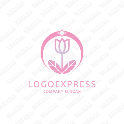 チューリップと星のピンクの可愛らしいロゴ [1303]