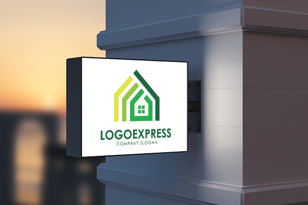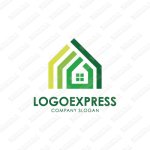 グリーンのグラデーションで描いた重なる家のロゴ [1346]