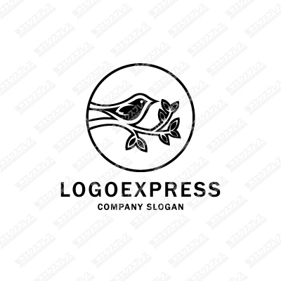 枝に鳥が止まるスタイリッシュなロゴ [1630]
