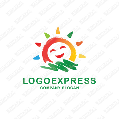 クレヨンで描いた笑顔の太陽のロゴ [1700]