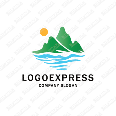 海と山と太陽の自然の中のロゴ [1701]
