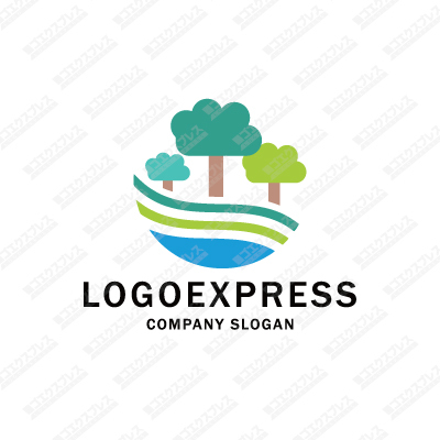 森と川の可愛いロゴ [1745]