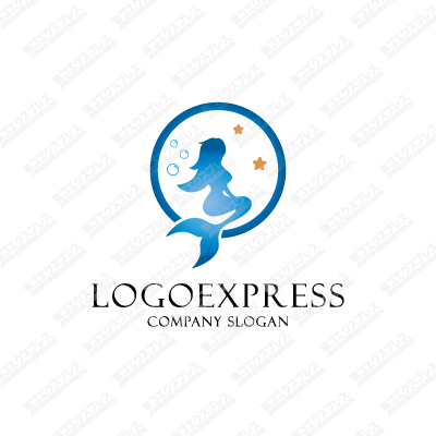 人魚が星を見ながら佇むシルエットの幻想的なロゴ [1823]