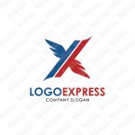 Xをモチーフにした翼の生えた躍動的なロゴ [1840]