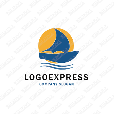 太陽をバックに海を進むヨットのシルエットのロゴ [1917]