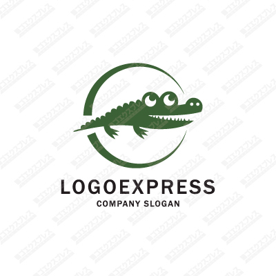 上を見上げる可愛らしいワニのロゴ