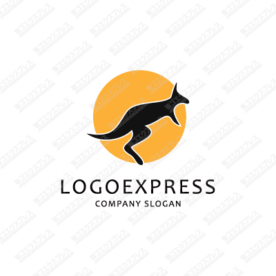 夕日を背に飛ぶカンガルーのロゴ [1936]