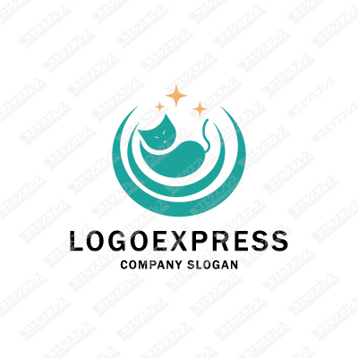 夜に寝る猫と星の素敵なロゴ [2400]