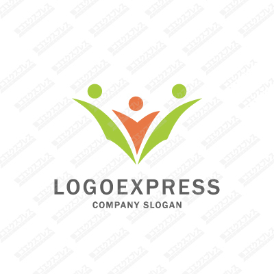 喜ぶ親子と花をモチーフにした素敵なロゴ [2429]