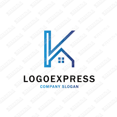 木とKをモチーフにした線と家のシンプルでスタイリッシュなロゴ [2485]