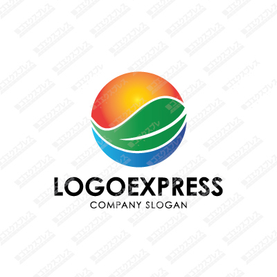 太陽の輝く自然と山と海のロゴ [2668]