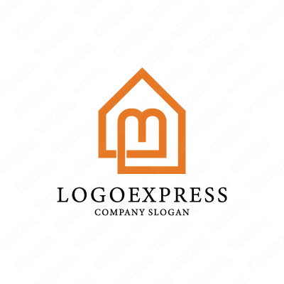 Mと家の一筆書きのおしゃれなロゴ [2742]