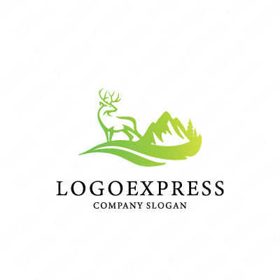 鹿と山を描いた雄大なロゴ [2822]