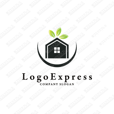 家と葉を半円で囲んだスタイリッシュなロゴ [2897]