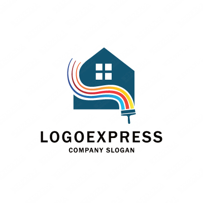 家とペインティングのペンキ、リフォームのロゴ [3109]